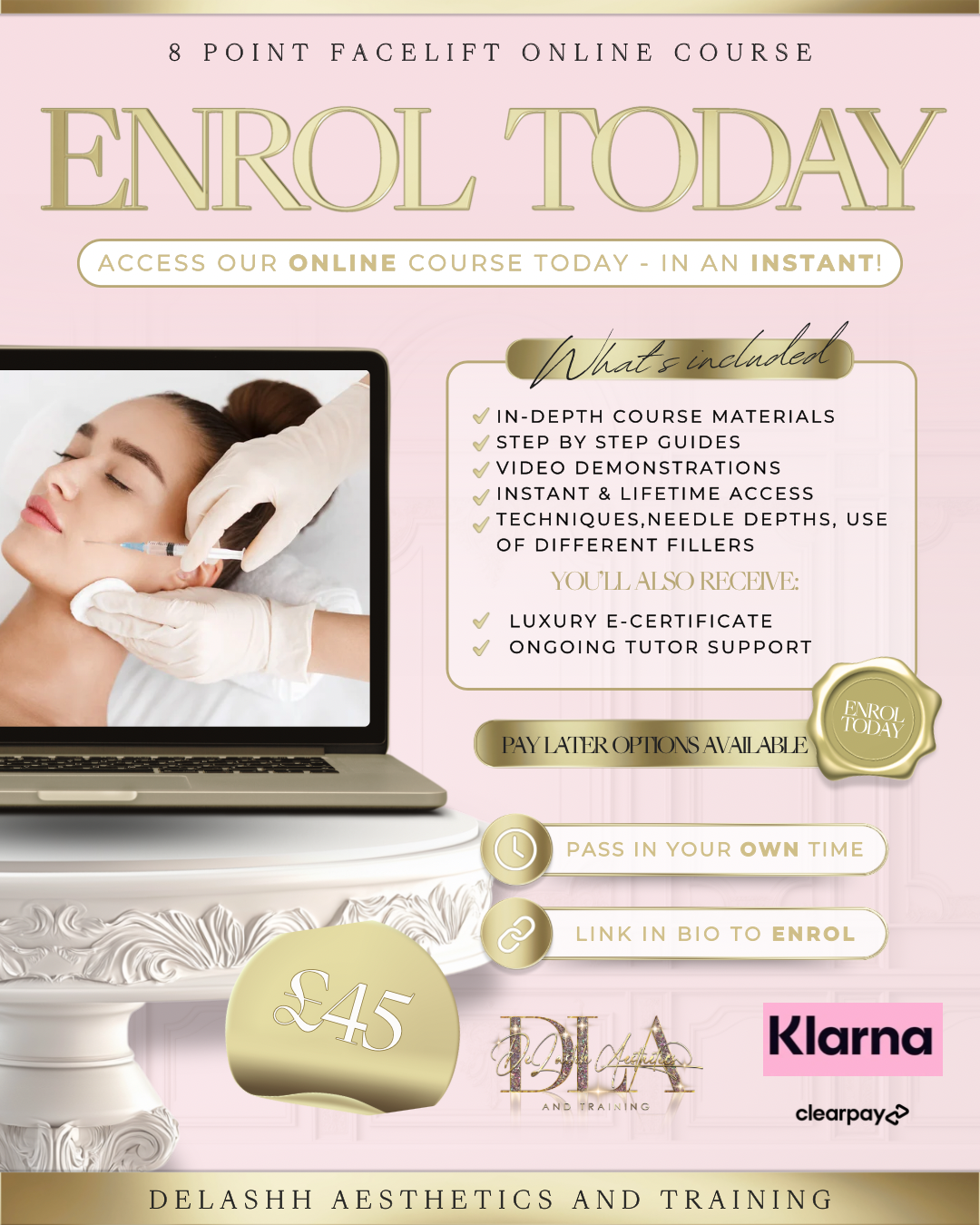 My online 8-Point Facelift course is designed for aesthetic practitioners who want to master the principles of full face rejuvenation using dermal fillers from the convenience of their own space.